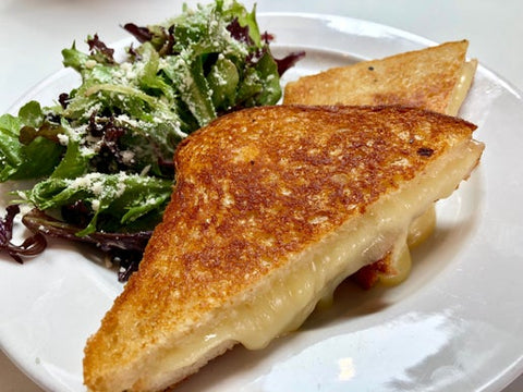 GRILLED CHEESE Hooks white cheddar cheese grilled on Sourdough bread. ~Add Ham, Bacon or Prosciutto